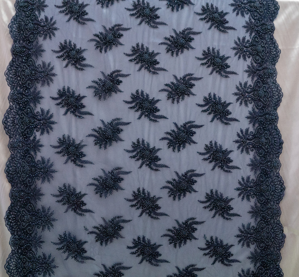 French design embroidered Beaded and Sequins hand beading on a mesh lace. This lace is hand beaded with sequins and glass beads. The lace has a special beads that gives it that special shine. The lace can be used for dresses, night gowns, Skirts, prom dresses, wedding dresses, runners for tables, decoration and much more.